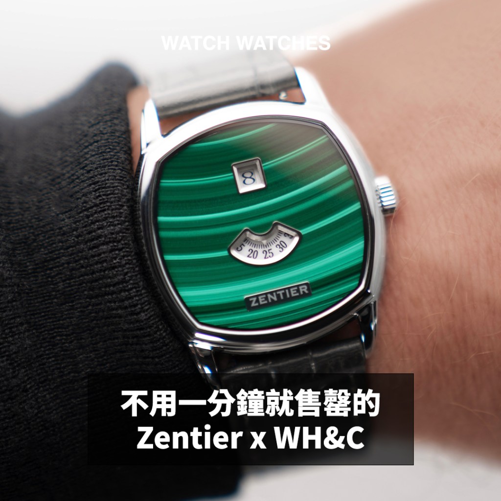 有哪些品牌能在短短一分鐘內售罄88隻腕錶?恐怕只有「微品牌」能夠創造如此佳績。此次WH&C x Zentier 合作推出的Sauté Malachite便是其中的佼佼者。這款腕錶的錶盤採用天然孔雀石因此每一隻的紋理都是獨一無二的,配備跳時功能和轉盤式分鐘顯示。孔雀石以其積極和充滿活力的特性而聞名,完美體現了WH&C的座右銘:“Good Vibes Only。”在圖五和圖六中,大家可以感受到WH&C社群中那股正能量的氛圍,在GTG中盡情欣賞並分享對手錶的見解。
