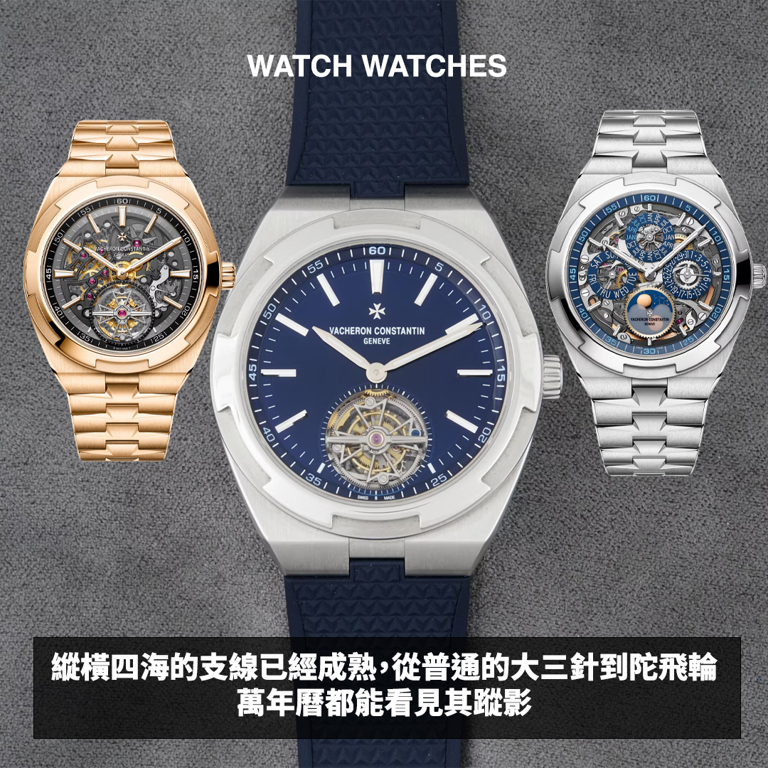 - Overseas:包含普通大三針、逆跳、月相、陀飛輪和萬年曆等多種功能
